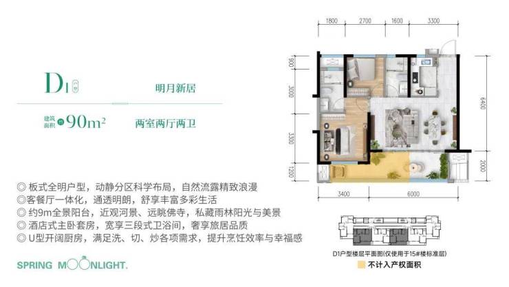 ▽D户型/ 建筑面积约 90㎡ 两室两厅两卫