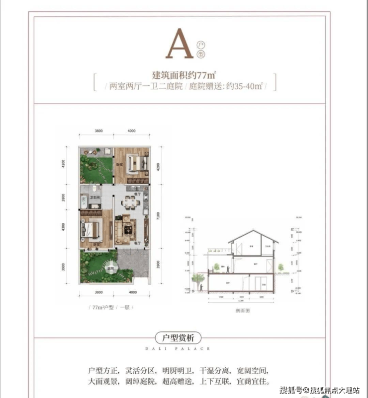 1、叠院:一楼77㎡