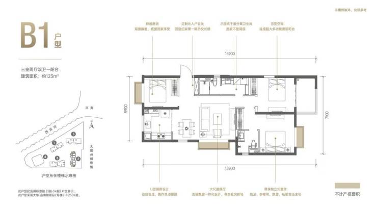 【便捷交通】项目以兴盛路、泰安路、洱河南路、洱河北路、宾川路形成了三横两纵的交通网络体系,在下关核芯,串联大理州全域。从项目出发,直线距离约2.2km便能到达大理高铁站;直线距离约11km便能到达大理机场;直线距离约12km便能到达大理古城及各风景名胜区。