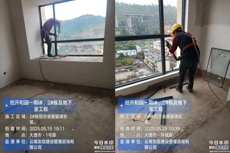 5、于3月3日开始实施1#、2#楼铝合金窗玻璃安装,总安装进度90%。
