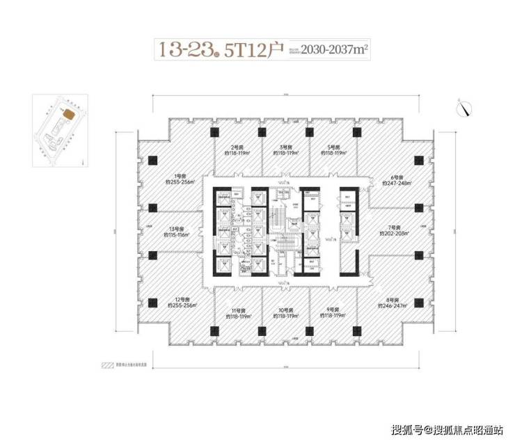 办公进深约11.7-13.2米,为国际写字楼黄金进深区间,最大化自然照明、办公使用效率,采光通风良好,后期办公可灵活布置工位、会议室等。