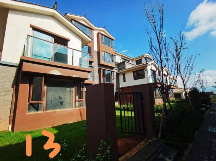 13栋主体封顶完成、砌体完成,内墙抹灰完成,外墙抹灰完成,外架拆除完成,屋面防水完成,露台防水完成,腻子完成100%,涂料完成100%,门窗玻璃安装完成,阳台栏板安装完成、小青砖完成100%,给排水管道完成100%,围墙栏杆安装完成,入户铁门安装完成、强弱电穿线完成、庭院走道铺贴完成;