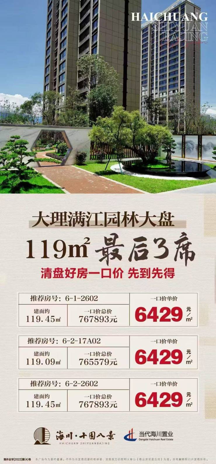 海川·十园八景,大理满江园林大盘,清盘好房一口价!关注海川·十园八景的朋友可前往售楼处现场看房,咨询房源信息请拨打电话400-156-0036 转 426610!