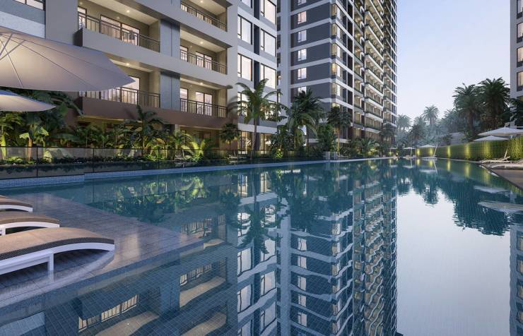 巨幕客厅:55㎡奢阔客厅,约18㎡观景阳台,俯瞰蔚蓝泳池大景