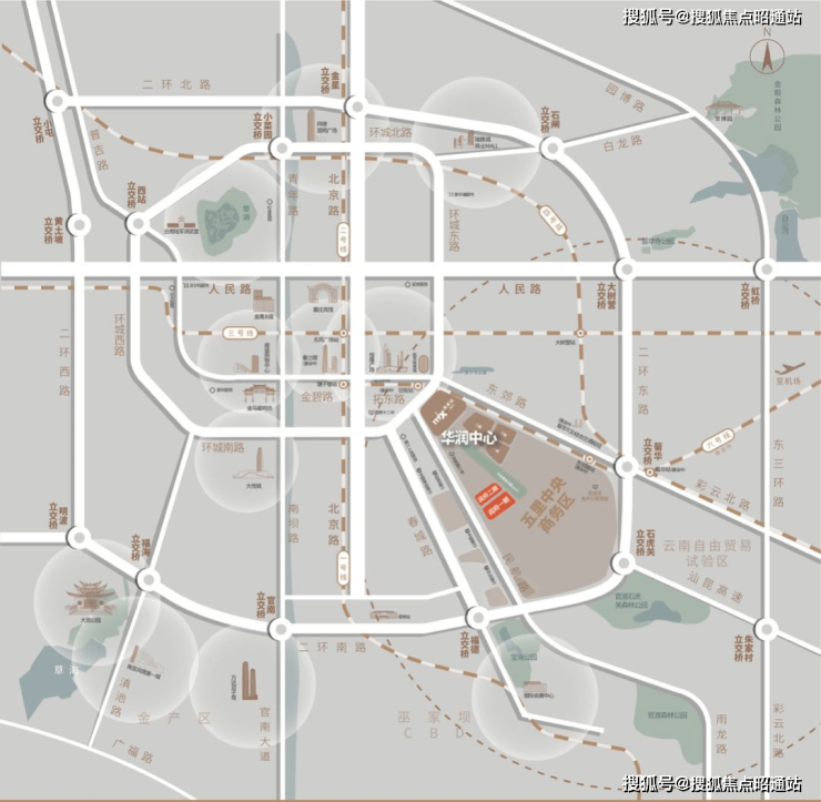 项目位于城市中心核心区昆明市一环内环城南路与东郊路交汇处,核心区占城市核心配套资源30%以上。