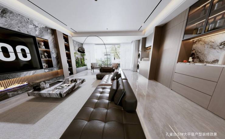 巨幕客厅:55㎡奢阔客厅,约18㎡观景阳台,俯瞰蔚蓝泳池大景