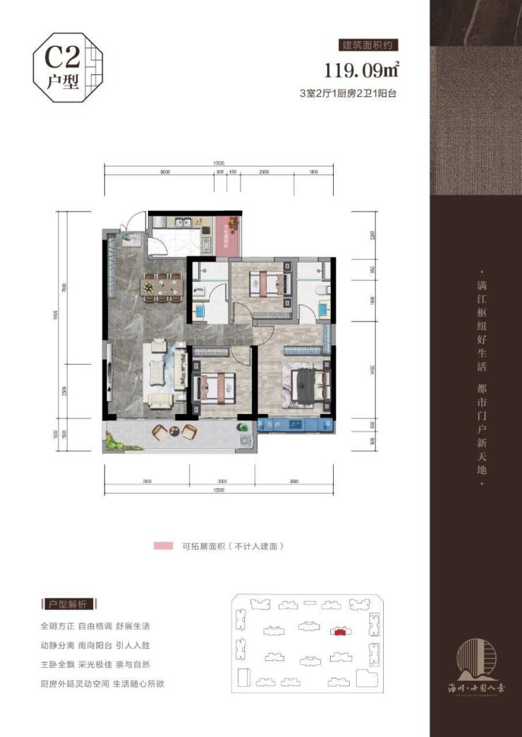 9、更符合客户需求的户型(106-147平三房四房),超大阳台、三开间朝南