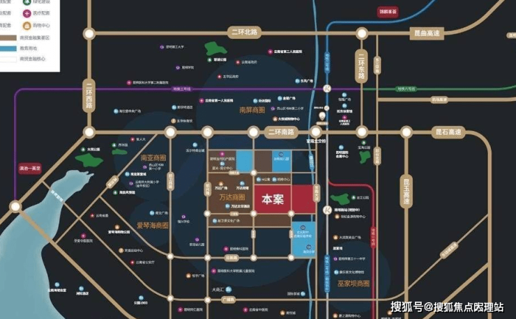 〖交通配套〗:项目占据双塔片区的核心区域。位于昆明市高速发展的黄金地段,北侧为昆明市区,是昆明主城副中心。南二环、地铁1号线、官南大道贯穿环绕,以多维交通网罗多条主干道。位于双塔片区离地标性建筑“万达双塔”最近的可开发地块,南面紧邻小官路、西面与万达双塔仅一路之隔,直线距离约400米,北面距离南二环城市快速干道约300米,同时项目的东侧紧邻昆明的母亲河一盘龙江,以及在建的地铁2号线南坝路站及提供日常体憩为主的龙江公园,享有了最佳的交通网络分布和地铁便利,三横(二环南路、日新路、广福路)三纵(前卫西路、前兴路、官南大道)十分方便驾车通达全城。