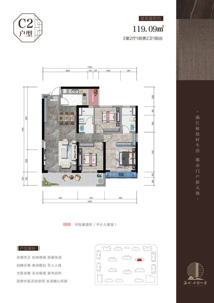 出则繁华,近享宜家,十园八景位于满江核心商业圈,出门即达,相近而不相临,享繁华商圈内仅有纯住宅高品质公园小区。(相近而不相临,唯有十园八景不会因小区和商业相临而堵车、也不会因各种各样的噪音而烦恼,同时购物、逛商场只需步行)。