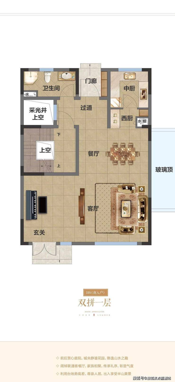 大联排面积:360-382㎡,花园55-170㎡,中户价格:475-550万,端户650-680万