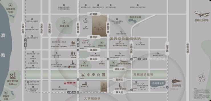昆明邦泰悦九章傲踞呈贡行政金融中心的黄金地段,具体位于春融东路与祥和街交汇处,与呈贡吾悦广场一路之隔 ,这一得天独厚的地理位置,使其成为了城市发展的焦点。