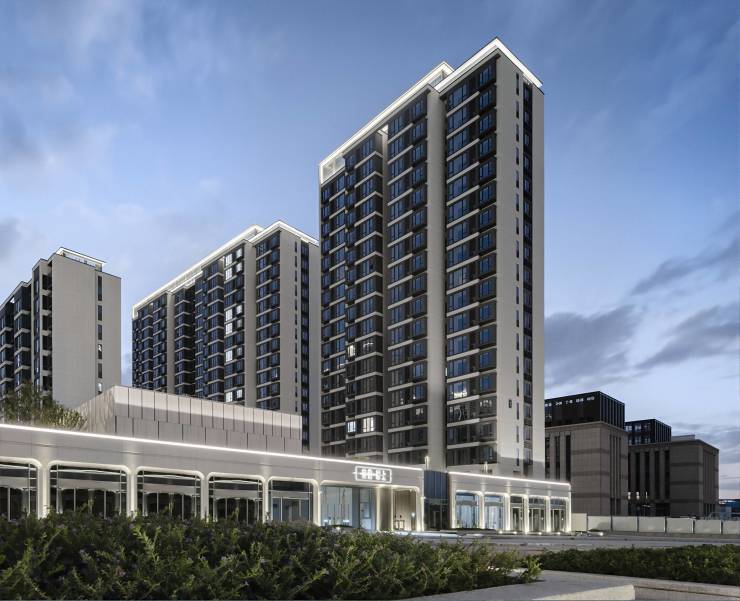 建筑立面采用铝合金玻璃窗,搭配浅米黄与深灰色质感涂料,勾勒简约大气、历久弥新的现代美学轮廓。社区大门与楼栋单元入口,融入石材、玻璃幕墙与金属线条,以精致细节提升归家仪式感,于简约中尽显高端质感。