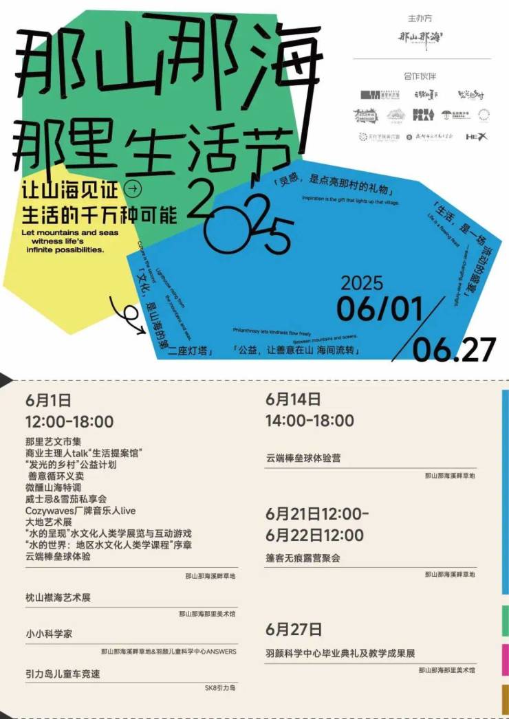 6月的朝阳刚刚翻过苍山,第二届「那里生活节」已在溪畔草地的微风与微醺中盛大启幕,儿童节的笑声充斥着羽颜儿童科学中心,nali街区也迎来全新的主理人邻居,在艺术和公益交织的“氛围组”打动每一个人时,人们一边赶集,一边感知着夏日山海的美。