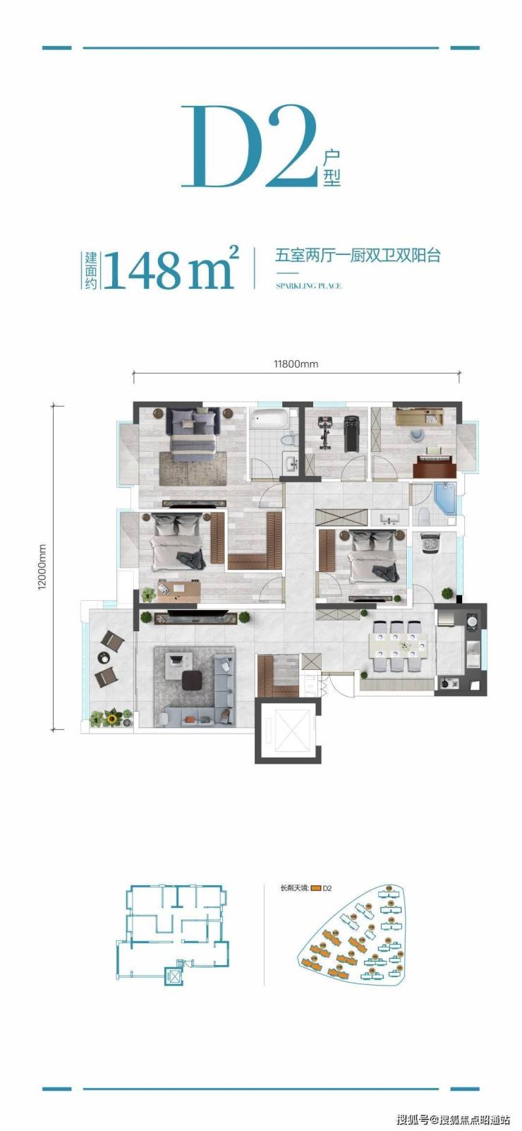 148㎡五房两厅一厨双卫双阳台,稀缺五房设计,实用性不二之选,满足三\四代居住需求,餐客厅分离设立杜绝气味干扰,主卧独立衣帽空间更多尊崇享受,厨房直连生活阳台洗晒便利
