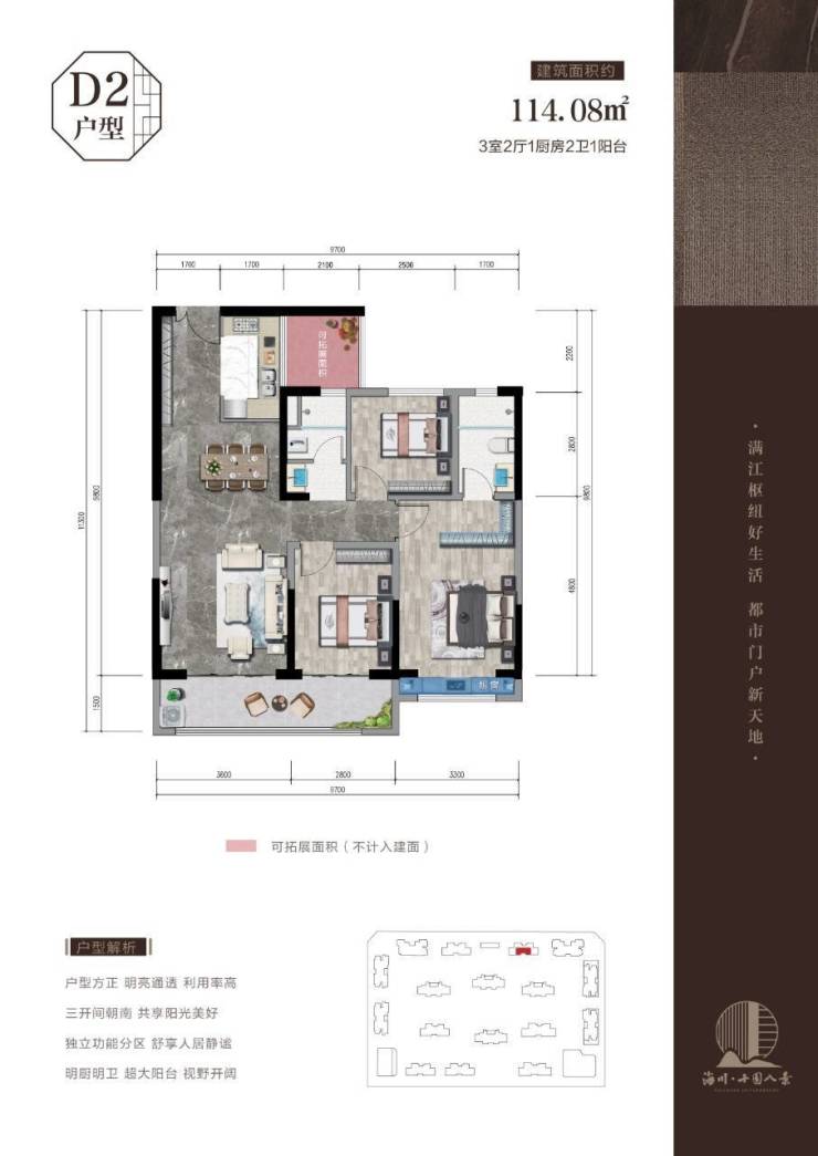 9、更符合客户需求的户型(106-147平三房四房),超大阳台、三开间朝南