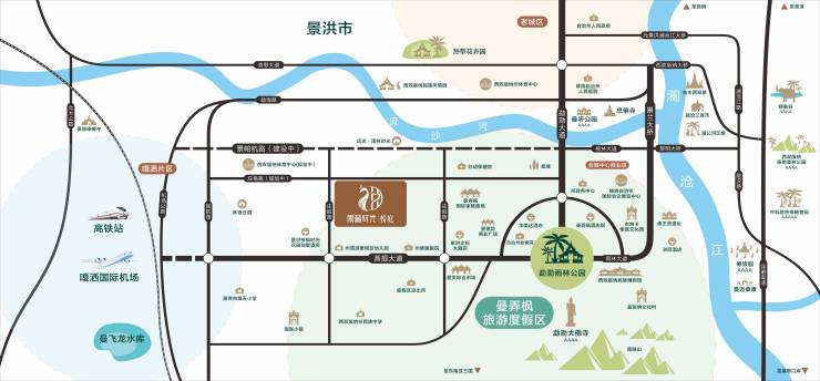 资源优势:项目周边有着不可模仿的景区资源、自然资源优势。地处曼弄枫旅游度假区,背靠大氧吧---南联山脉和勐泐雨林公园;国内知名南传佛教文化礼堂---勐泐大佛寺、西双版纳州博物馆。