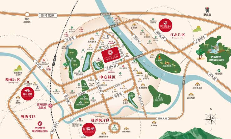 三大商圈环抱,10分钟内可达西双十二城、财富中心、爱琴海购物公园。周边景洪市集贸市场在侧,成熟生活配套即步即达,纵享缤纷生活。