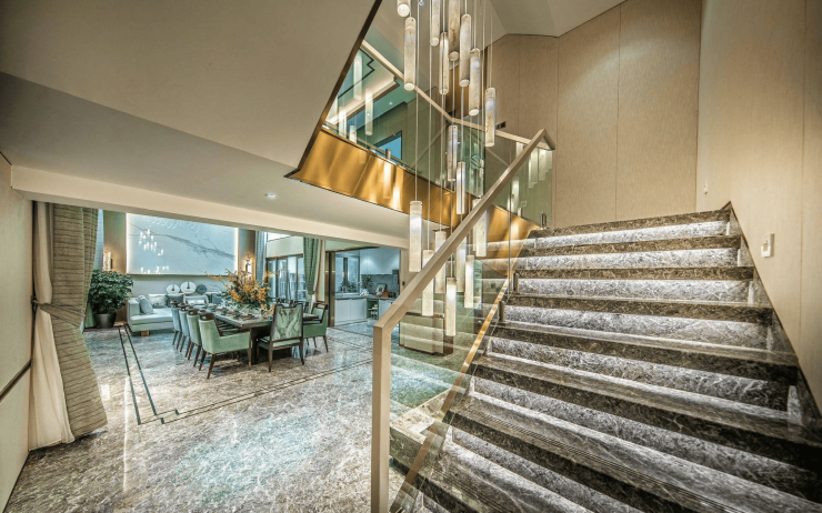 双层挑高地下室,可自由拓展夹层,奢阔的空间,为各种生活意趣营造多元私密空间,既可以承载家人更多日常生活方式,还能培养主人的个性喜好与艺术内涵。