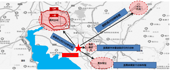 毗邻地铁1号线,7号线(规划中)交汇,无缝衔接昆明高铁南站、长水国际机场及南部汽车客运站,形成立体交通网络,覆盖全市及周边城市客群。