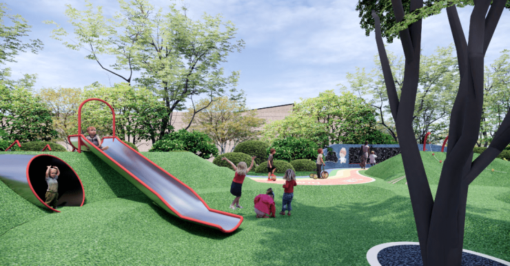 瑞园住宅楼栋的架空层,将打造成全年龄社区共享空间,理想是给三代人共同使用的生活场域。秉着用心规划、空间尽用的原则,瑞园的架空层包括娱乐、游玩、健身、社交等功能,分别打造——儿童成长乐园、青年健身中心、长者社交天地。