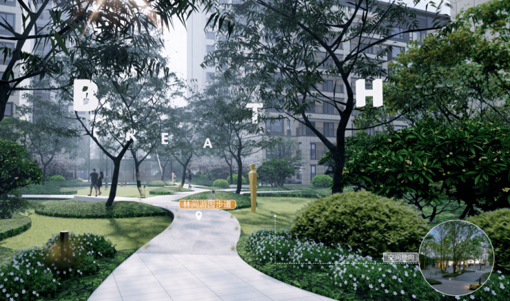 精选的自然植被与雅致步道的错落排布,给予点滴生活生机蓬勃的生态气息,每一次踏足,都是一次探索的开始。