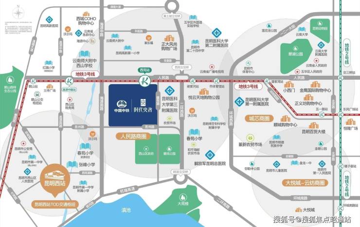 地铁:约200米直达地铁三号线西苑站,作为贯穿昆明东西的骨干轨道交通线,西至西山公园,东至东部客运站,与所有地铁线路无缝换乘,连通城市中芯繁华商圈、城市优质资源、连通主城与机场、高铁站,连通东西南北四大客运站换乘的轨道“换乘之王”。