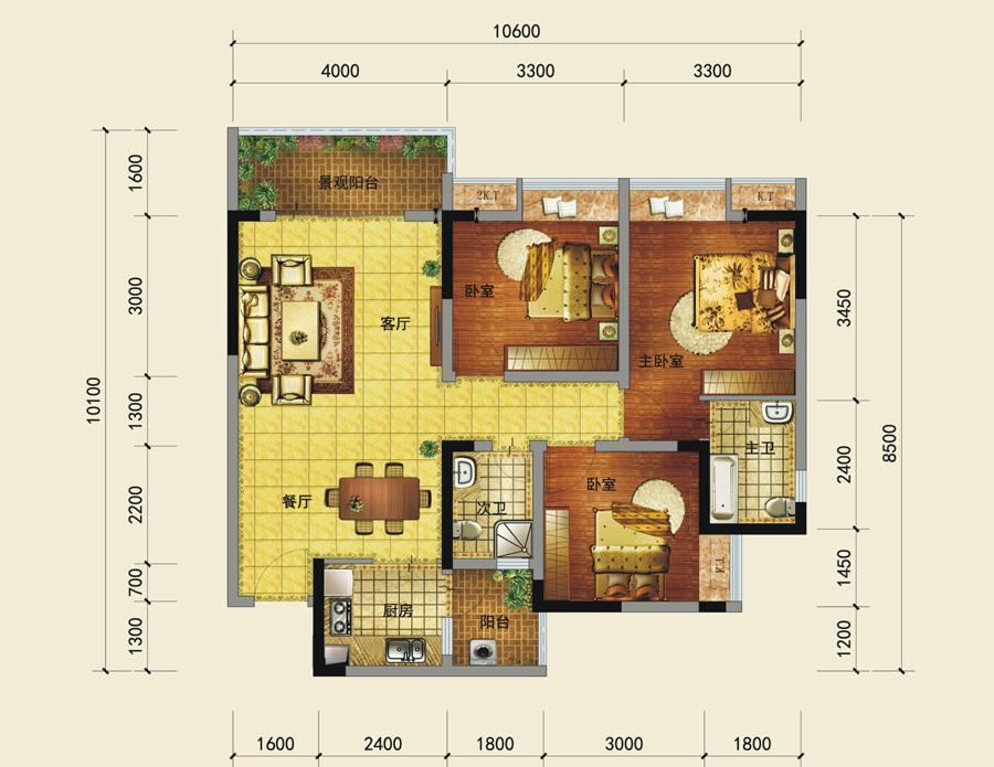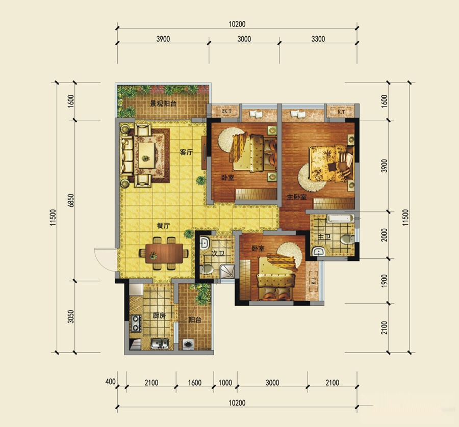 在售 主卧带卫 户型方正 观景飘窗 干湿分离 餐客分离