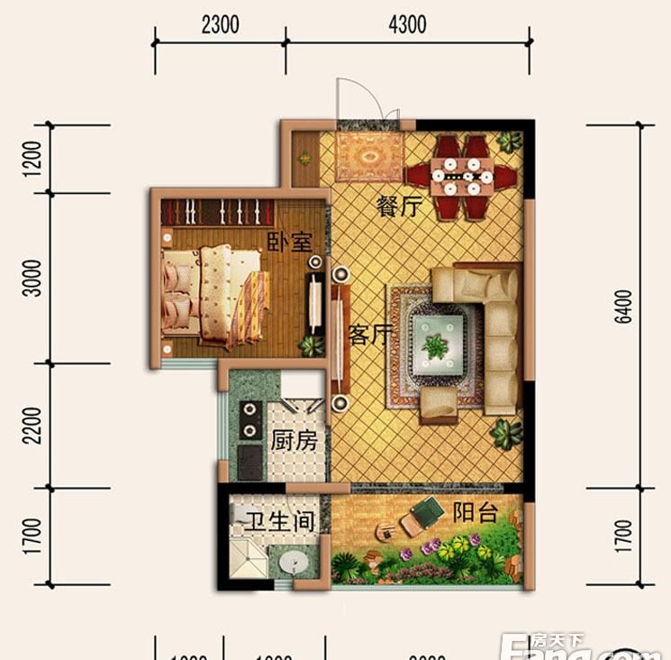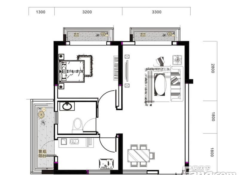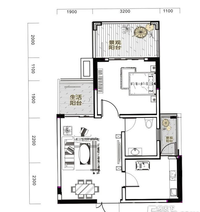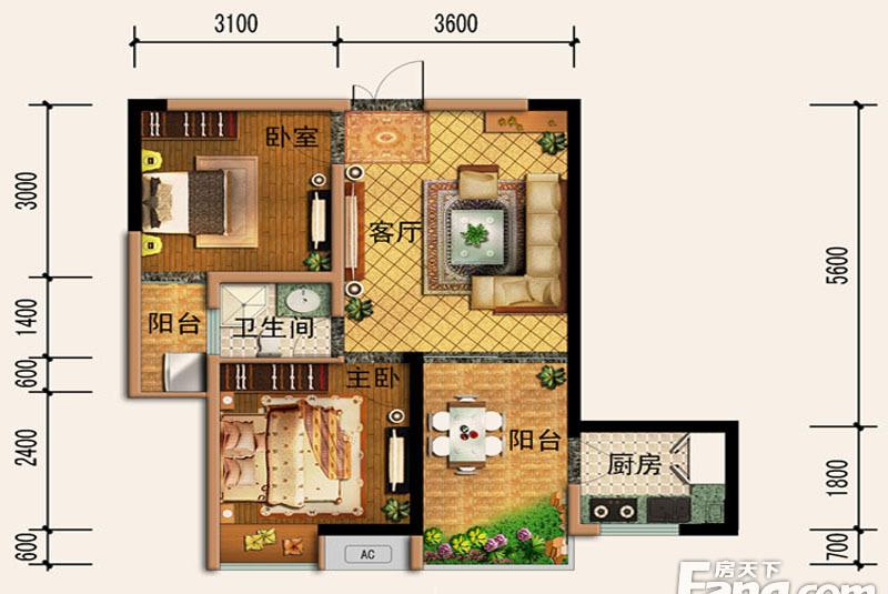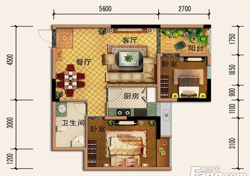 2室2厅1卫-C栋-B户型