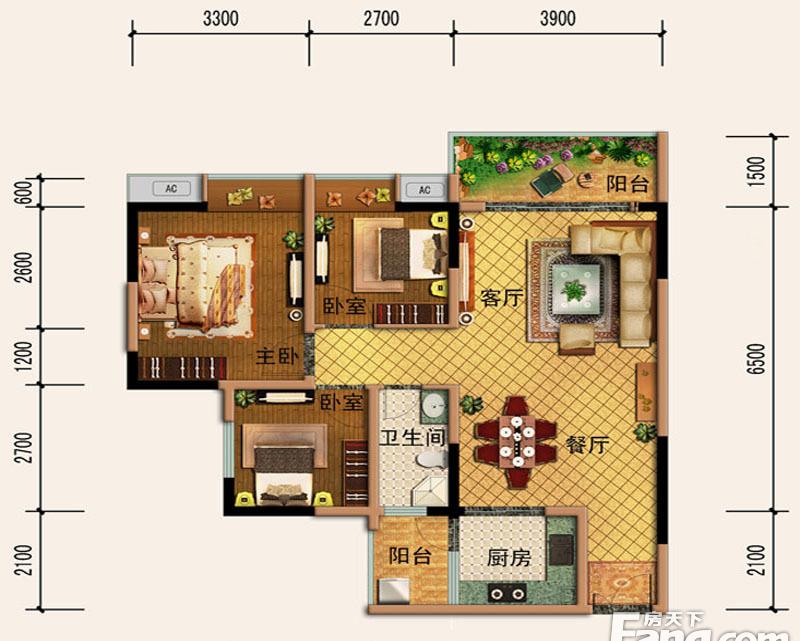 3室2厅1卫-C栋-A户型