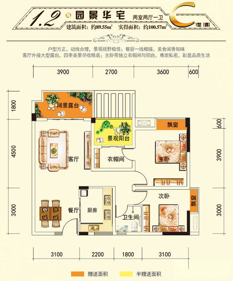 45万/套 建面89.55m²