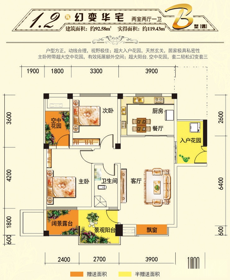建面92.58m²