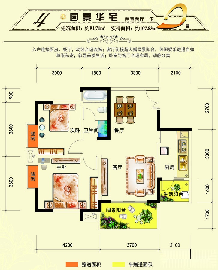 46万/套 建面91.71m²