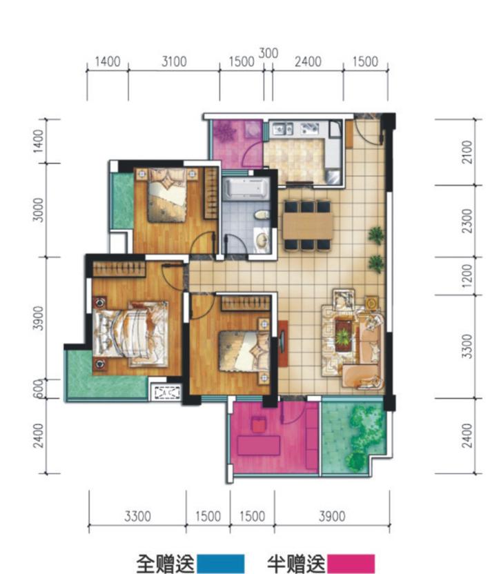 在售 观景落地窗 户型方正 全明格局 干湿分离 餐客分离