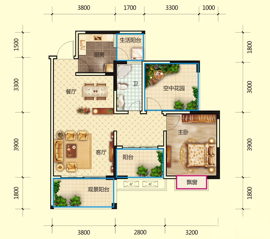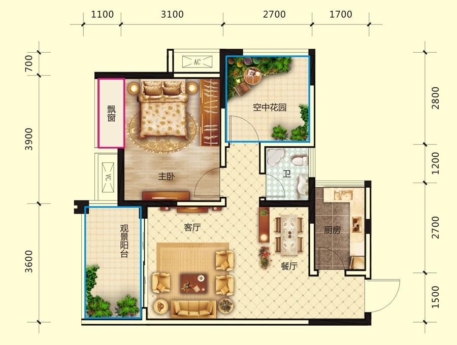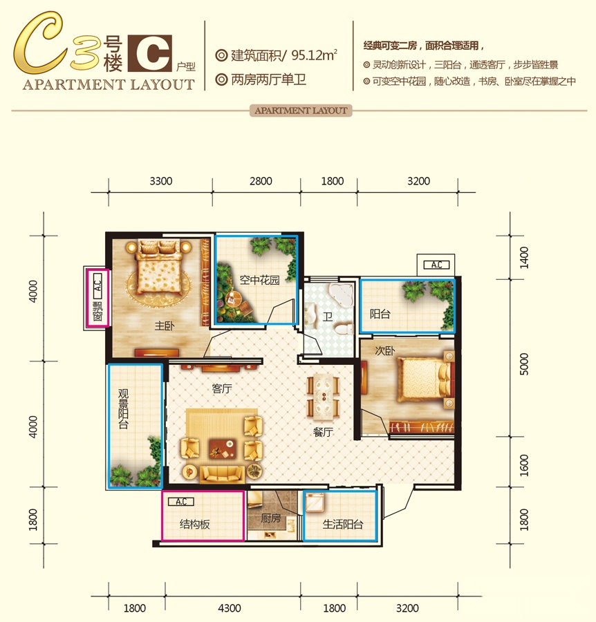 2室2厅1卫-C3-C户型