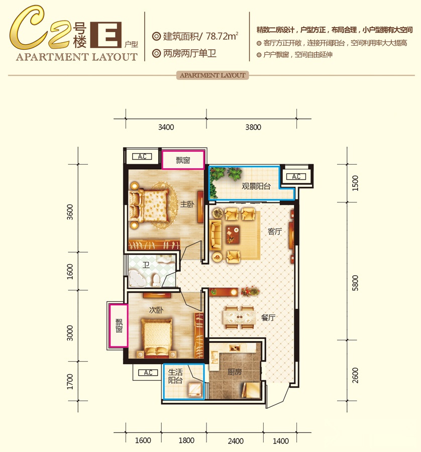 2室2厅1卫-C2-E户型