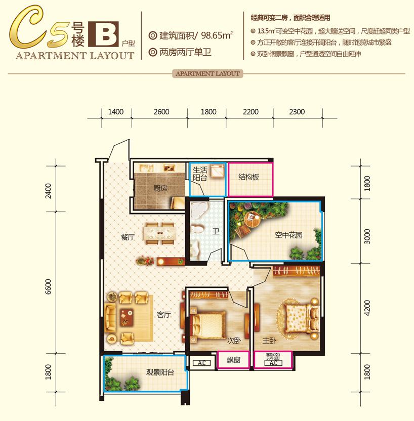 2室2厅1卫-C5-B户型