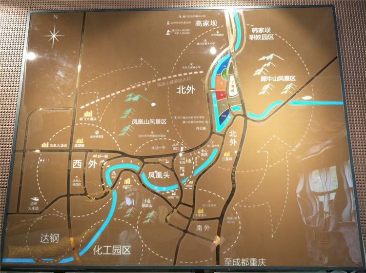 小区内部配套:首席亿元级私人会所:室内游泳池、健身房、SPA、室外园景游泳池、休闲茶房、地下红酒窖、KTV包间、室外咖啡厅、中餐厅、西餐厅、雪茄吧。教育:国际知名双语幼儿园、品牌小学、国际外国语中学,商业: 20万平米商业,配置奢华生活,社区商业带、达州新天地、会所级商业、CBD商业中心、川东民居风情商业街构建立体商业群落。休闲: 4.2公里滨河景观大道、滨水喷泉音乐广场、山体风情公园