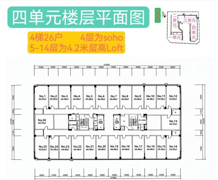 公寓层高:LOFT 4.2米/ SOHO 3米