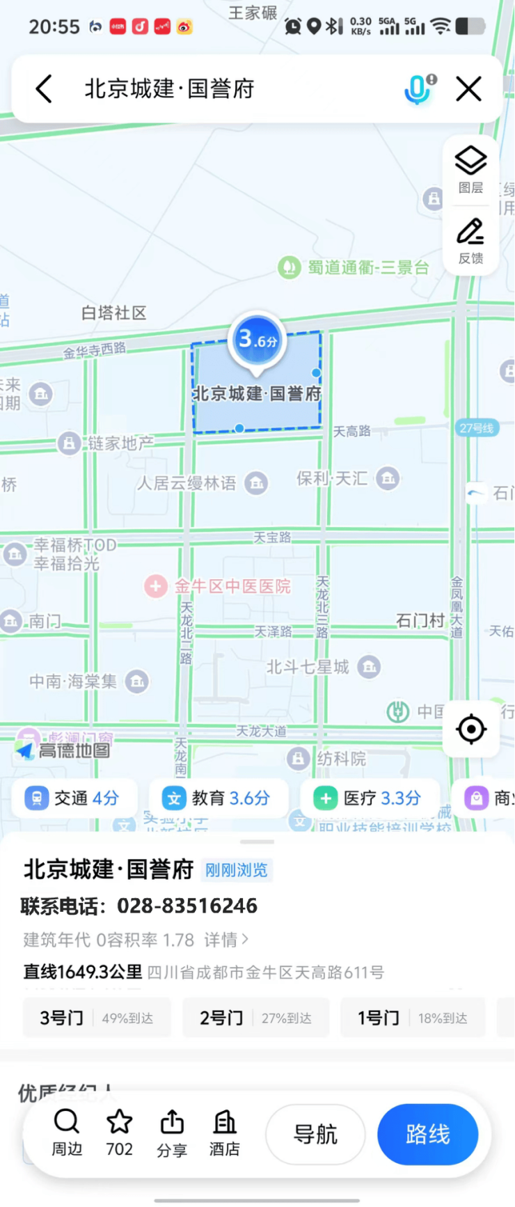 高德地图最新核实收录,国誉府官方售楼处电话是028-83516246(4月最新认证)