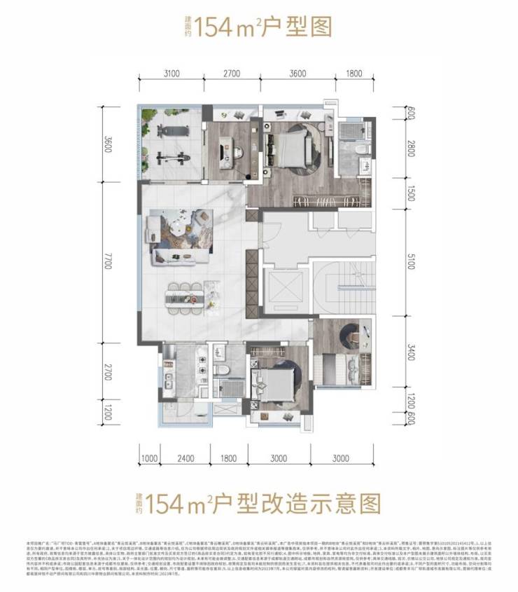 全城迭代端厅户型,三面采光板式大宅,48㎡餐客空间+约11.8㎡方形阳台