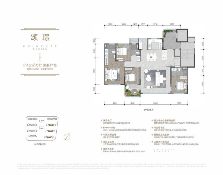 在售面积:约143 -175 -199 ㎡ 精装四房