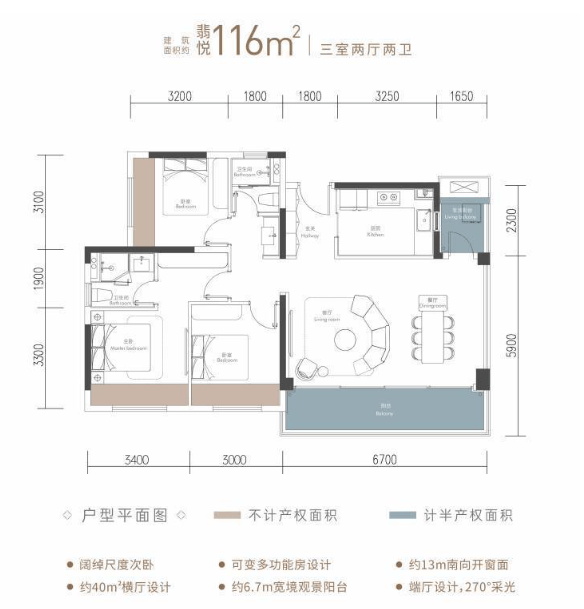 项目提供从紧凑三房到奢华大平层的完整产品线,精装标准达2570元/㎡,全面覆盖不同阶段的家庭改善需求。