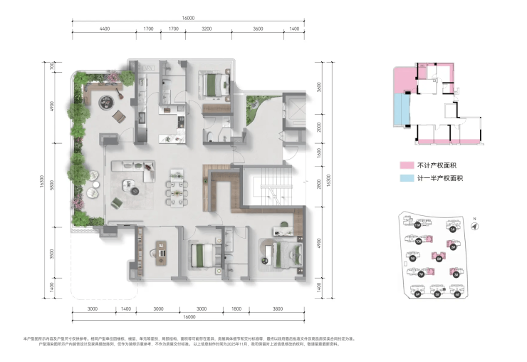 同时,项目融合 “湖、岛、森” 美学与礼序,打造封面级仪式大门、约 1000㎡下沉庭院会所,泊客区、栖屿时光会所、全龄共生场域错落分布,地面森境与空中庭院相映成趣,让归家之路成为一场穿越自然的旅行。