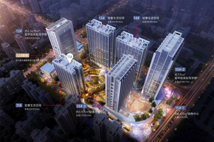 ② 两栋甲级写字楼(国企蜀道自持+交通勘察设计院总部),办公人群多,增加消费和租住,为酒店/公寓/商场创造先决条件