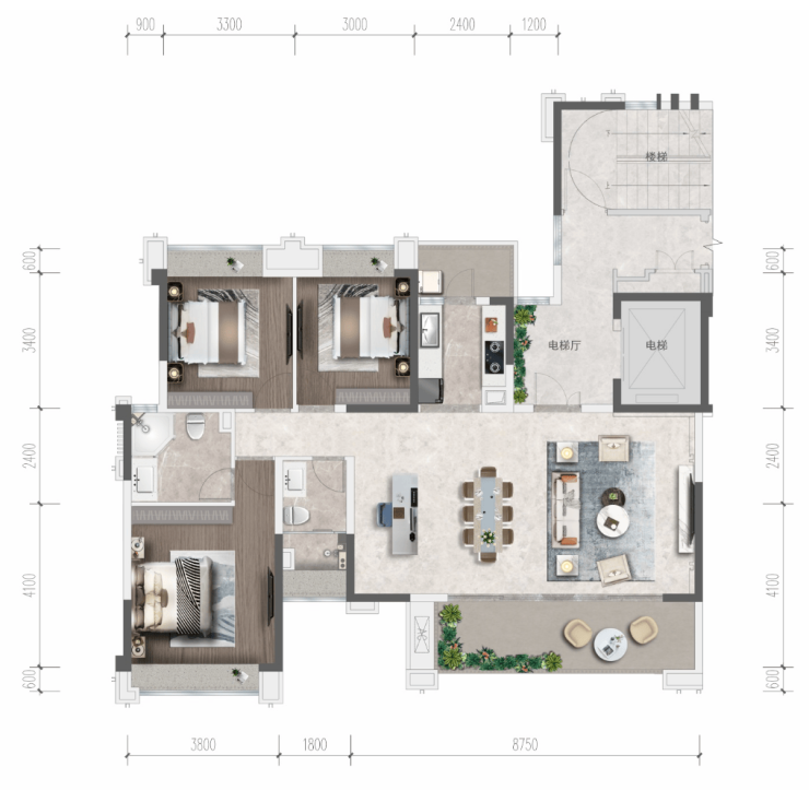 约8m宽敞开间,大尺度横厅+朗阔阳台,三厅设计,宽境生活从容有度,宽敞入户前厅,尊享精致归家礼遇,安全与静谧兼得,朗阔横厅设计,纯板式通透户型,清风穿堂,尽享境界人生,阔境阳台,拓展室内空间视野,一目揽景,品味不凡境界行政主卧套房,独立洗室,亨行政套房宽居体验。