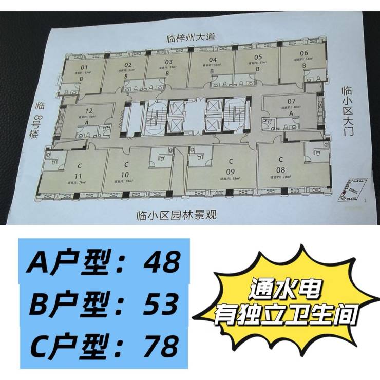 面积:48-53-78平(4梯12户)