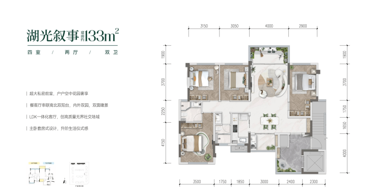 户型覆盖 108-133㎡,均为精装交付,省去装修烦恼,实现 “拎包入住”;