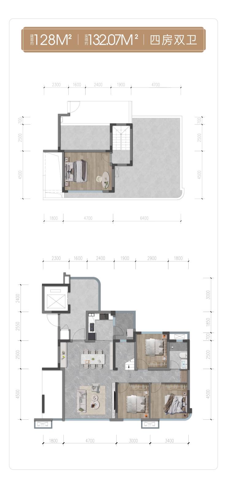 【产品面积】建面约94㎡的3房2卫、建面约110㎡的3房2卫(可变4房)