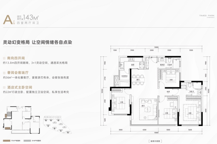A户型/建面约143㎡四室两厅双卫