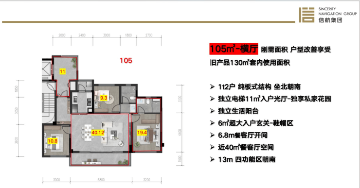 105㎡三居:横厅设计实现113㎡实得面积,相当竞品130㎡空间效能
